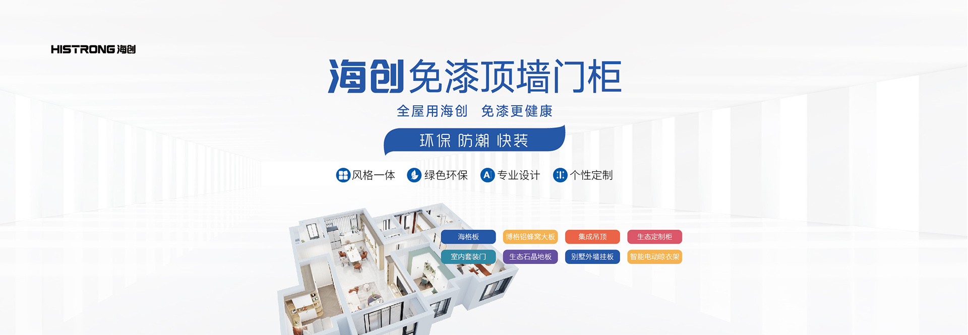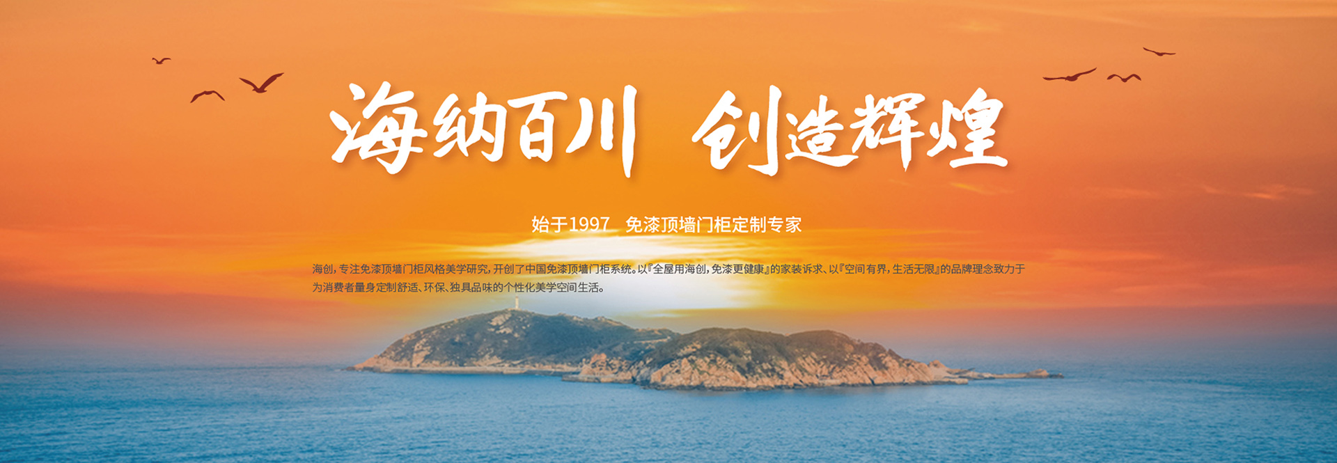 海創(chuàng),專注免漆頂墻門柜風(fēng)格美學(xué)研究,開創(chuàng)了中國免漆頂墻門柜系統(tǒng)。以『全屋用海創(chuàng),免漆更健康』的家裝訴求、以『空間有界,生活無限』的品牌理念致力于為消費(fèi)者量身定制舒適、環(huán)保、獨(dú)具品味的個(gè)性化美學(xué)空間生活。